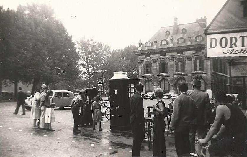 third row left: barrel organ (cranked by a little girl) on the Left Bank, Bastille Day 1955