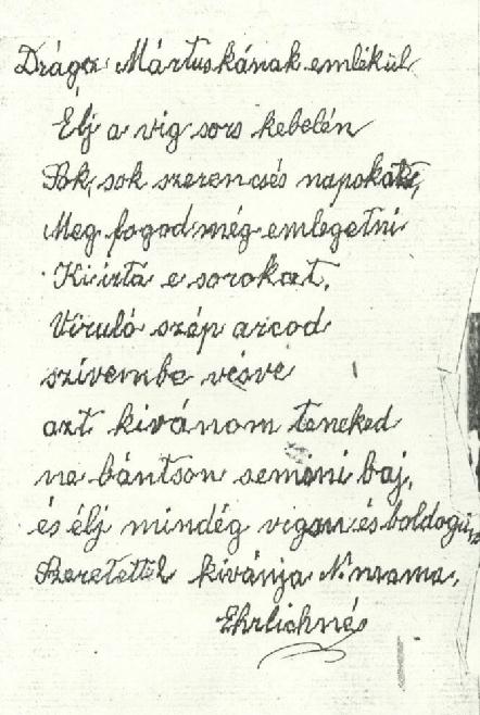 Poem from Nagymama [Grandma] Sarolta Ehrlich, August 1927
